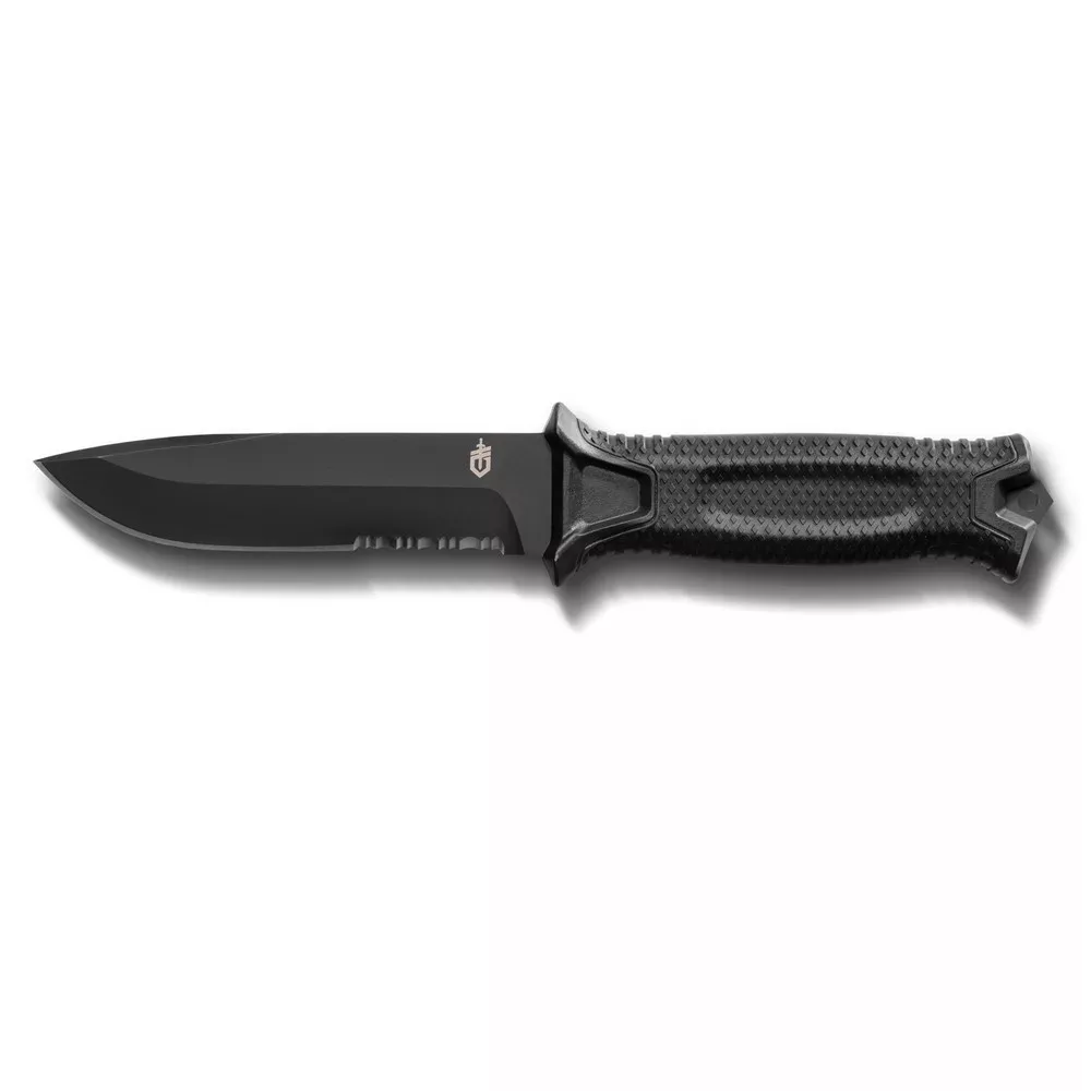 GERBER Strongarm taktikai tőr, félig fogazott pengével, fekete - Pengehossz: 12,2 cm