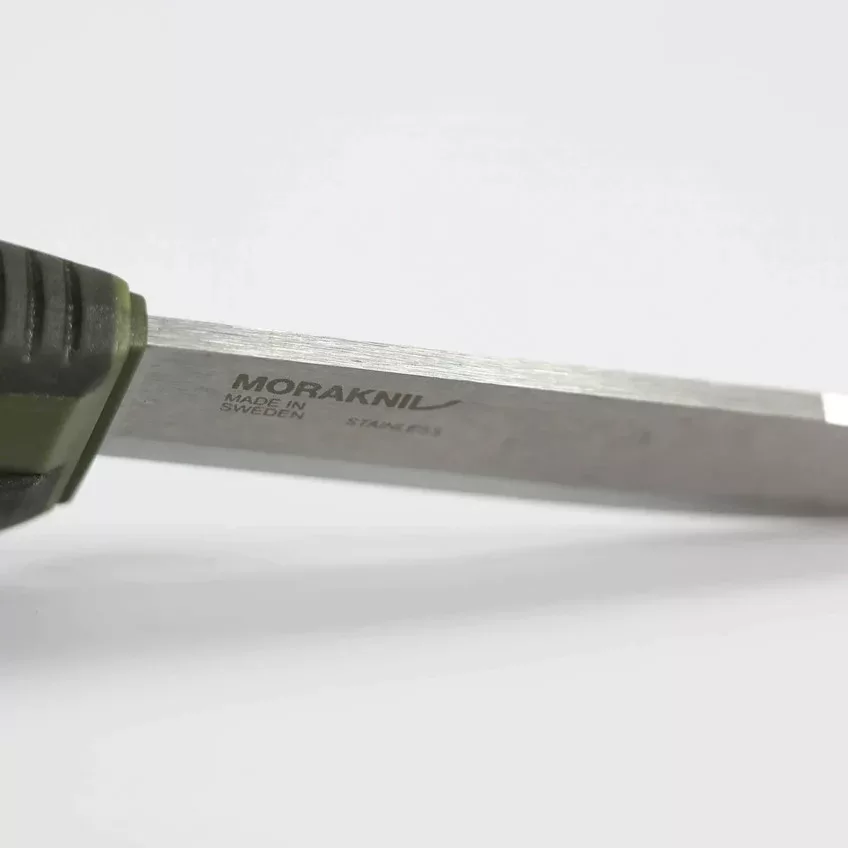 A penge svéd 12C27 rozsdamentes acélból készül, amely kiváló korrózióállóságot és könnyű karbantarthatóságot biztosít. A 109 mm hosszú, 3,2 mm vastag penge klasszikus Scandi élezést kapott, ami erős, tartós vágóélt ad, miközben terepen is könnyen fenhető.