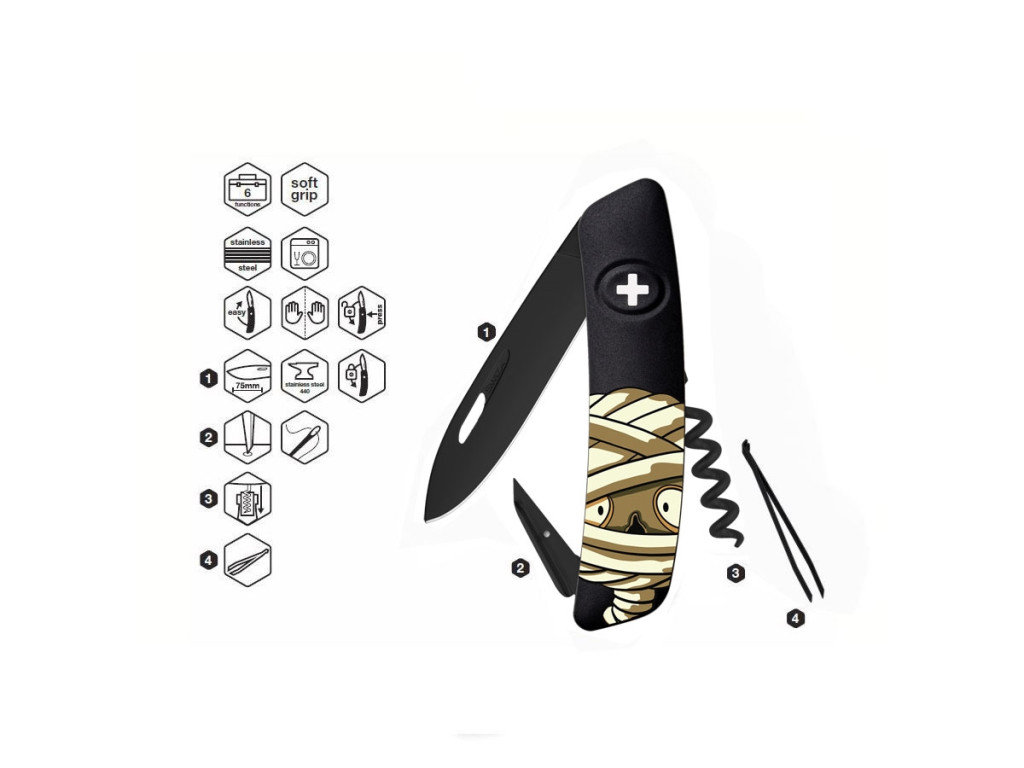 Swiza D01 AB HALLOWEEN, fekete/múmia (KNI.0013.H005)-zsebkés