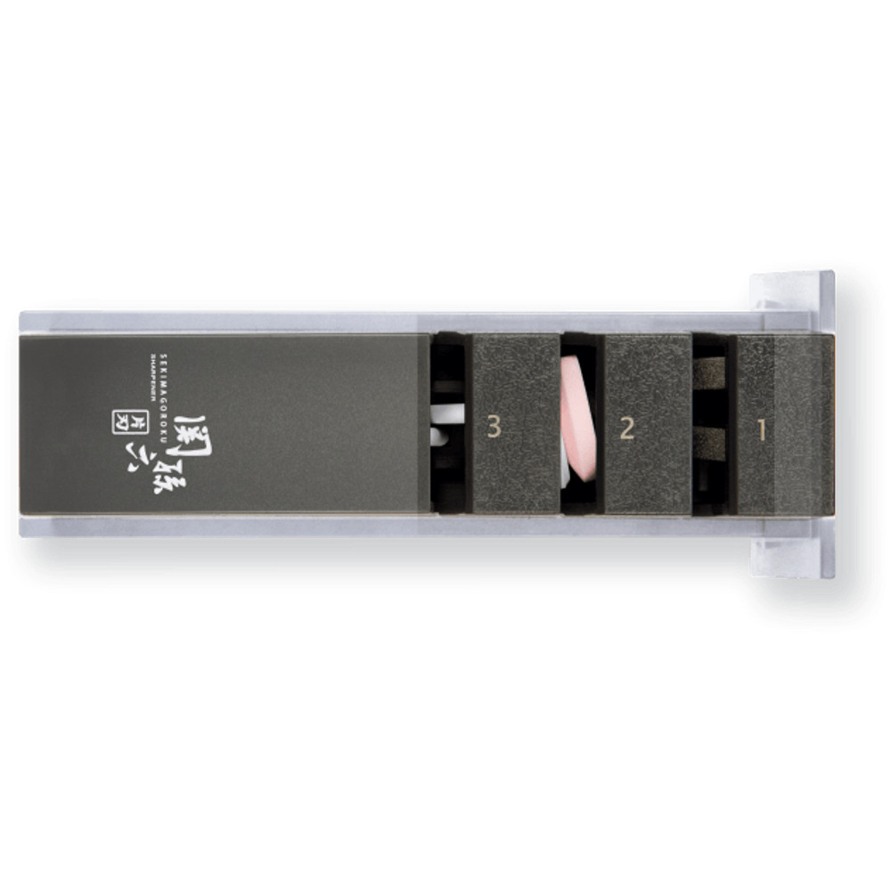 KAI Seki Magoroku három fokozatú késélező egyoldalas élezésű késekhez. A kézi élező, 3 különböző csiszolási fokozattal rendelkezik, egyoldalas élezésű késekhez, például sushi késekhez (csak jobbkezes modellek) Tartalma: gyémánt élező 270 grain (2X) ; kerámia görgők 150+1000 grain ; kerámia élező rudak 1000 grain - (2X). Nem lehet használni kétoldalas élezésű késekhez!
