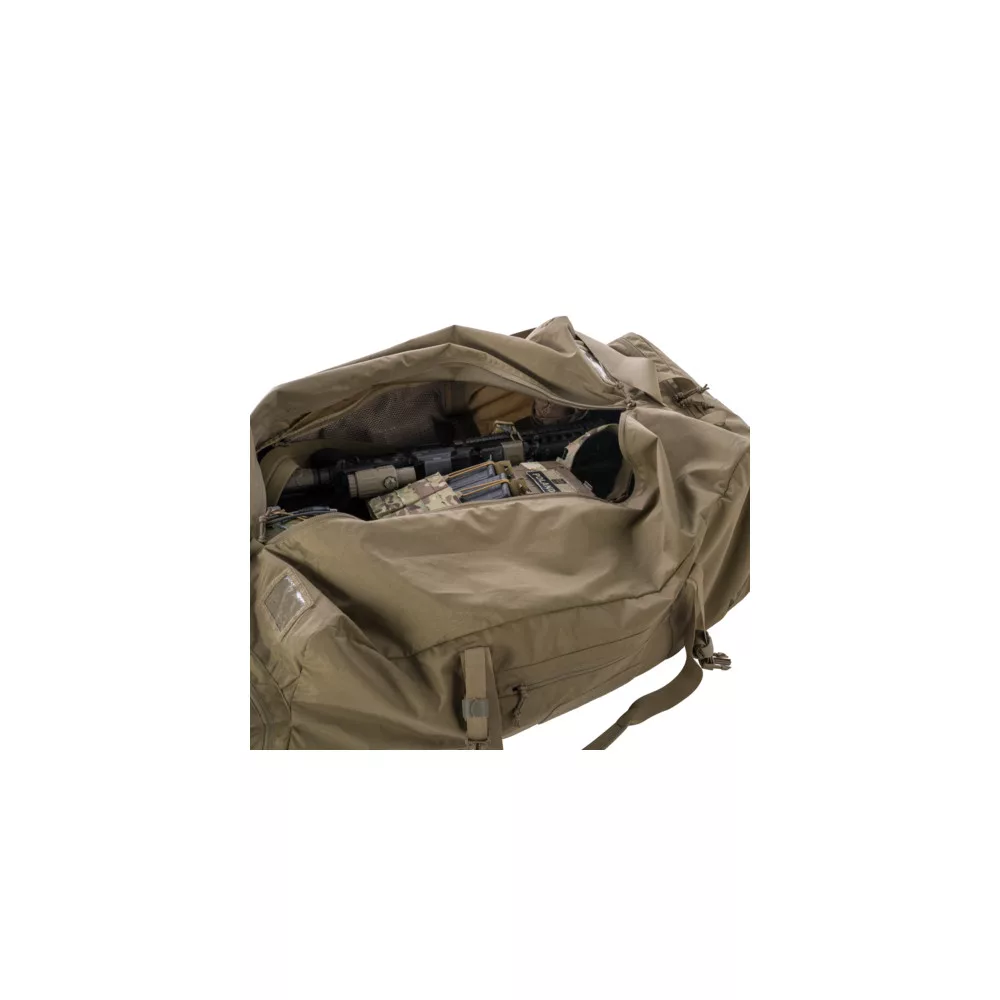 A Deployment Bag Large egy praktikus táska, amelyet a Direct Action kínál A hordozókapacitása eléri a 150 literes felszerelést. A Deployment Bag Large tartós Cordura 500D anyagból készült. Széles állítható vállpánttal, két oldalsó fogantyúval és két, a teljes aljába varrt szalagos fogantyúval rendelkezik, így a táska nehéz terhekhez is alkalmazkodik. Középen könnyen hozzáférhető YKK cipzárral, két lapos külső rekesszel és két különálló oldalzsebbel rendelkezik. A főrekesz belsejébe két cipzáras hálós zsebet varrtak. A Deployment Bag Large táska két tépőzáras hurokkal bélelt oldalsó panellel és két átlátszó címkével lett ellátva a könnyű személyre szabás érdekében. A Deployment Bag Large szerkezete puha, és a jobb beállítás érdekében kompressziós pántokkal van ellátva. - Tépőzáras azonosító panelek - könnyű hozzáférés a felszereléshez