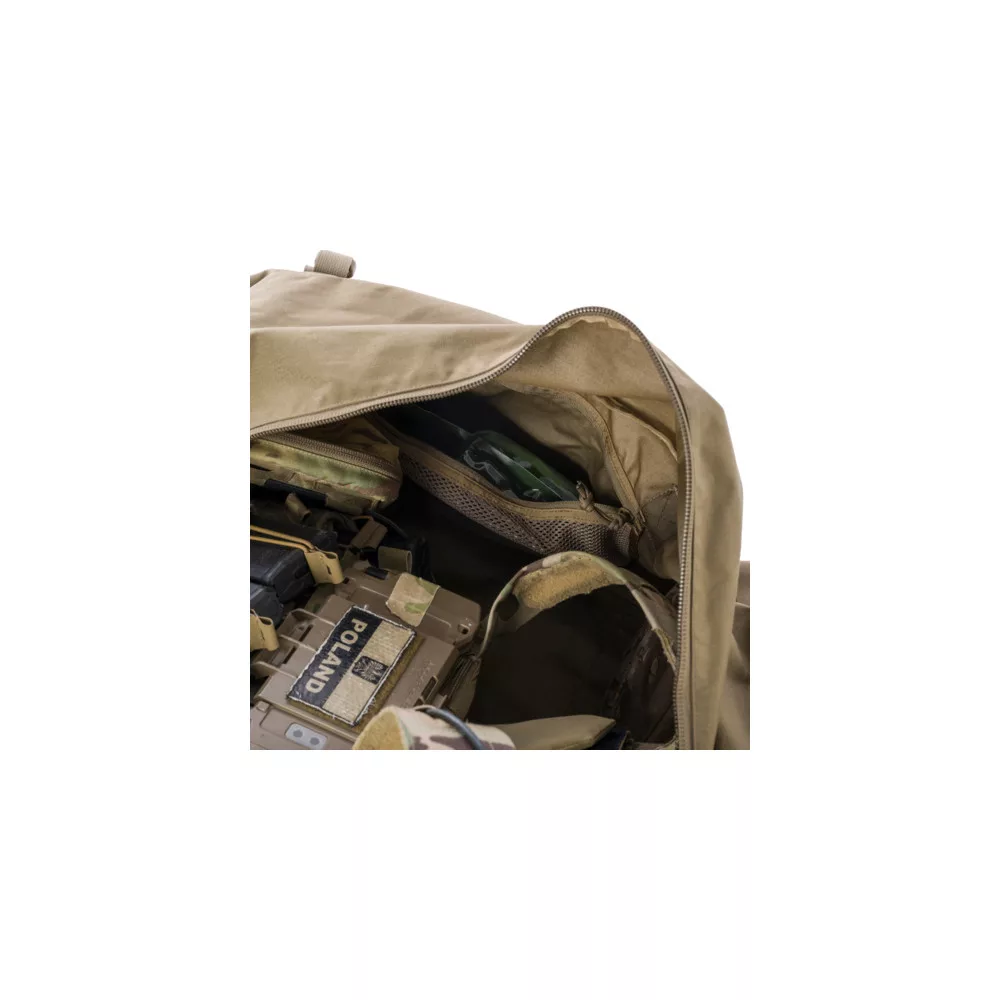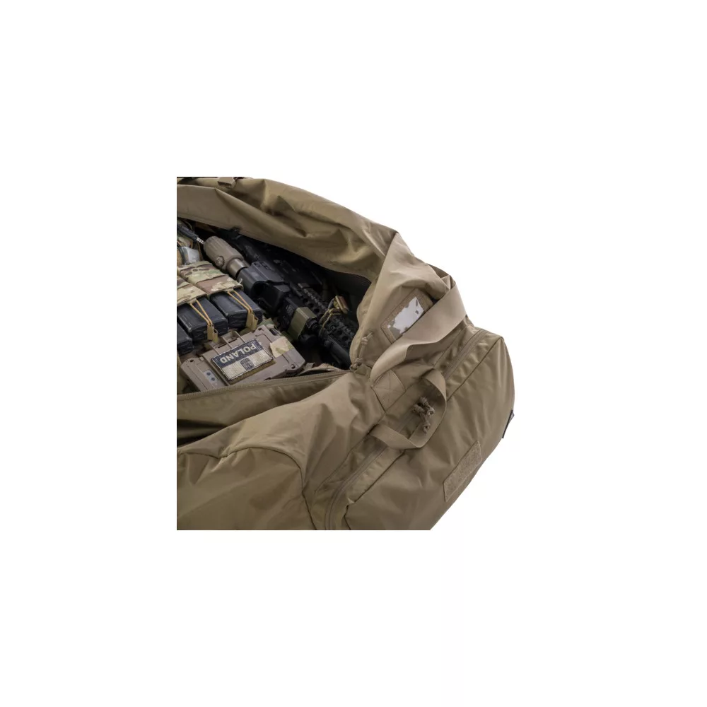 A Deployment Bag Medium egy könnyű taktikai táska, amelyet a Direct Action kínál A szállítási kapacitása eléri a 80 literes felszerelést. A Deployment Bag Medium tartós Cordura 500D anyagból készült. Széles állítható vállpánttal, két oldalsó fogantyúval és két, a teljes aljába varrt szalagos fogantyúval rendelkezik, így a táska nehéz terhekhez igazodik. Középen könnyen hozzáférhető YKK cipzárral, két lapos külső rekesszel és két különálló oldalzsebbel rendelkezik. A főrekesz belsejébe két cipzáras hálós zsebet varrtak. A Deployment Bag Medium táska két tépőzáras hurokkal bélelt oldalsó panellel és két átlátszó címkével lett ellátva a könnyű személyre szabhatóság érdekében. A Deployment Bag Medium szerkezete puha, és a jobb beállítás érdekében kompressziós pántokkal van ellátva. - Tépőzáras azonosító panelek - könnyű hozzáférés a felszereléshez