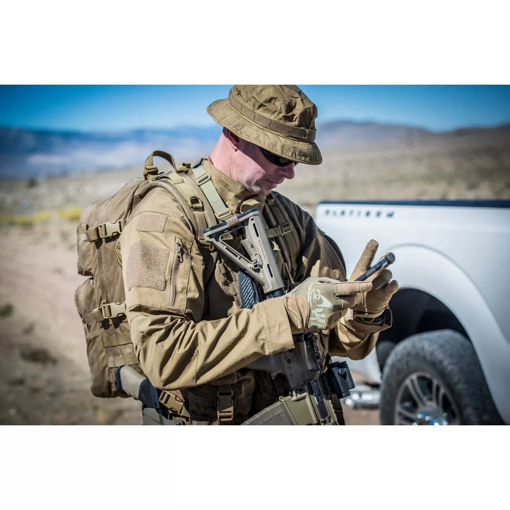 Az All Round Fit Tactical Glove családot lövész szakértőkkel közösen fejlesztette ki a Helikon Tex hogy ideális választás legyen bárkinek, aki kényelemre és biztos fogásra vágyik lövészet közben. A felhasznált anyagok garantálják a tökéletes ravasz kontrollt, kényelmet és jó légáteresztő készséget. A tenyér rész tartós műbőrből készült. Az elasztikus szegély segíti a gyors fel és levételt és órával együtt is kényelmes viselhetőséget tesz lehetővé. A hüvelykujj külső felületén elhelyezett mikroszálas anyag ideális a szemüveg vagy optika letörlésére. A középső ujj begye érintőképernyő kompatibilis