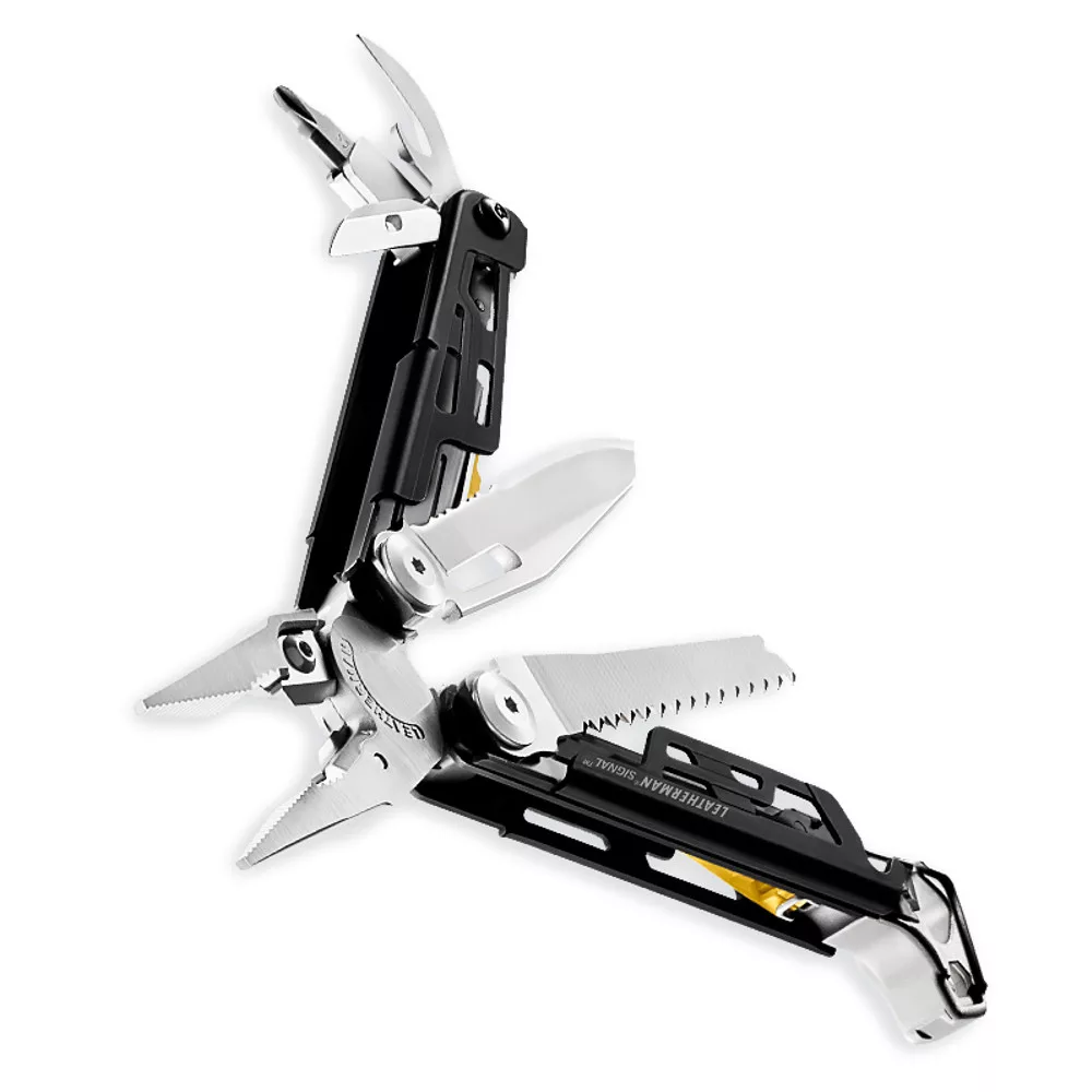AZ OUTDOOR MULTISZERSZÁM! Kifejezetten a természetjárók, kirándulók számára kifejlesztett multiszerszám, amely a megszokott Leatherman funkciók mellett szikravetőt, vészjelző sípot, késélezőt és karabinert is tartalmaz!