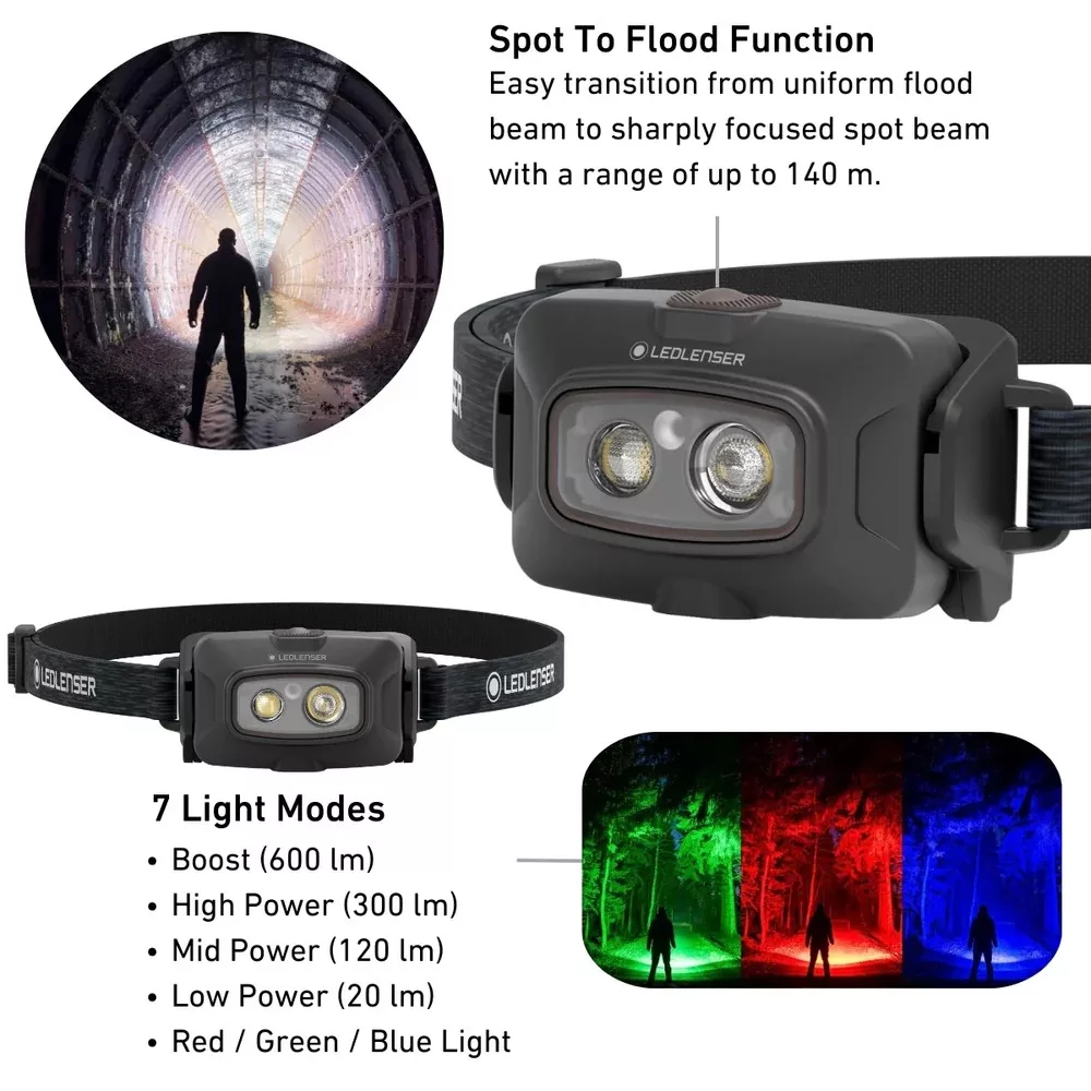 LEDLENSER HF4R Signature 600lm/140m, Li-ion, tölthető fejlámpa, szürke