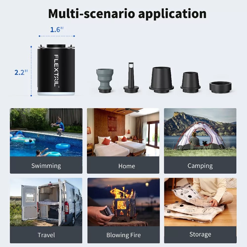 Széles körű kompatibilitás: Többféle fúvókával érkezik, amelyek kompatibilisek a legtöbb felfújható termékkel.