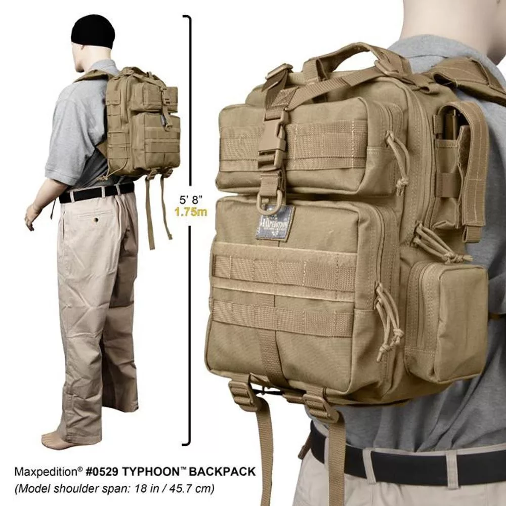 Ez egy olyan hátizsák, amelyet hátadon vihetsz kerékpározás közben, vagy amelyet egy napi kiránduláskor is magaddal vihetsz. Tartalmaz egy cipzáras oldalsó zsebet az okostelefonhoz, egy zsebet Hook - & - Loop tokkal zseblámpához vagy kisebb eszközökhöz, valamint található rajta egy elülső és oldalsó PALS rendszer a Maxpedition kiegészítők rögzítéséhez. A Typhoon Button-Lock ™ biztonsági funkcióval is rendelkezik lopás ellen.